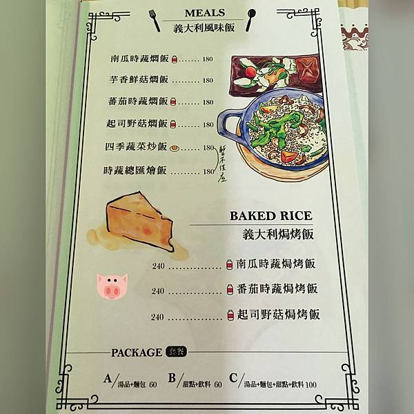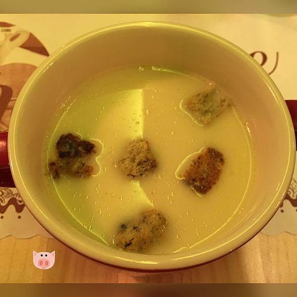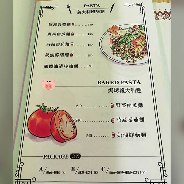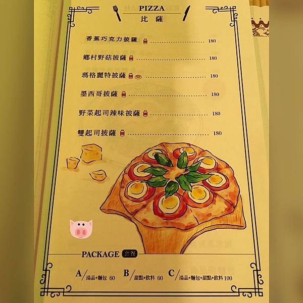 阿咩點的是「野菜起司辣味披薩」NTD180元+「C套餐"湯品+麵包+甜點+飲料"」NTD100元